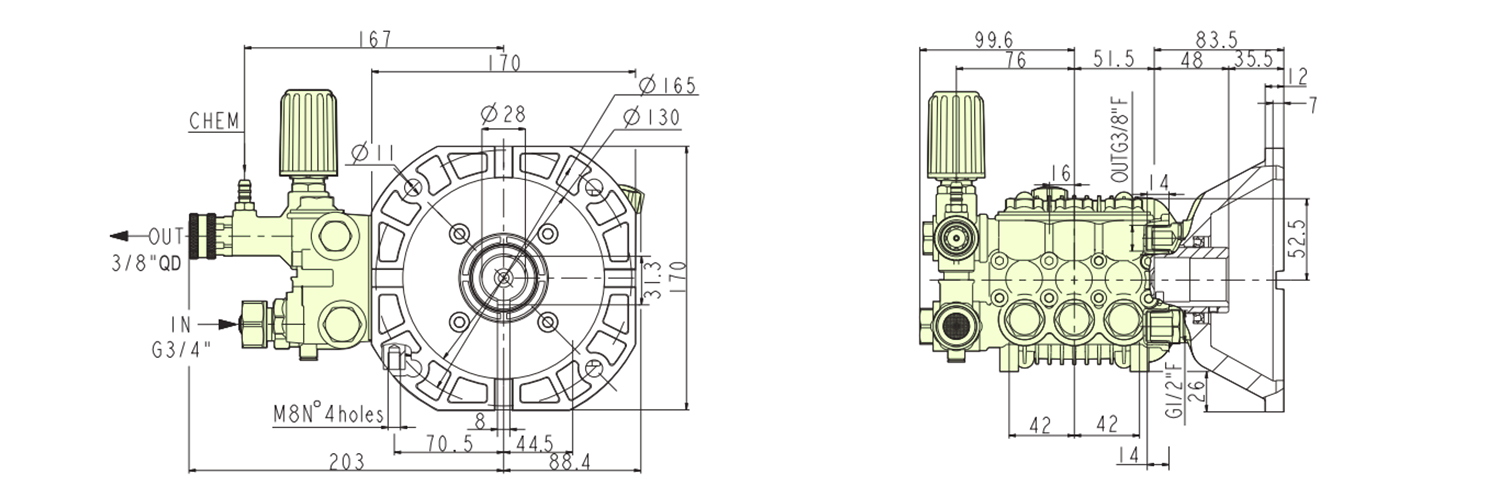 卸料口: 3/4 英寸(BSP 或 NH), 3/8 英寸快速连接