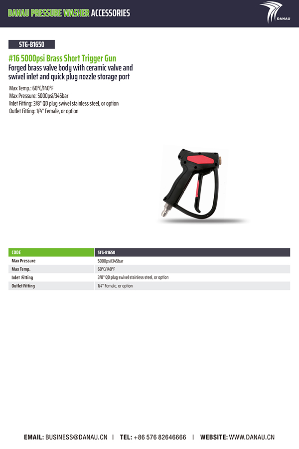 最大温子:60C/140°F 最大压力:5000psi/345bar 入口配件:3/8 英寸 QD 插头旋转不锈钢,或可选 出口配件:1/4 英寸母头,或可选