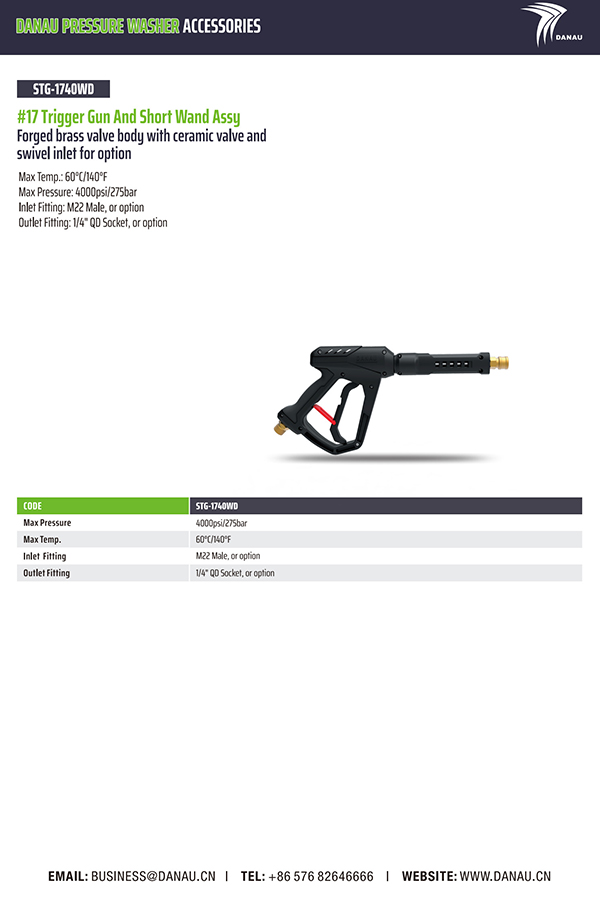 最大温度:60°C/1409F 最大压力:4000psi/275bar 验光器:M22 验光器 出口配件:1/4 英寸 QD 插座,或选配