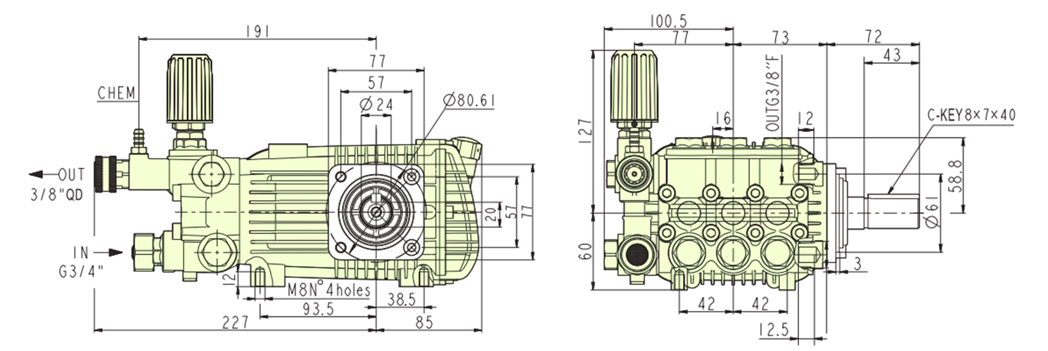 实心外轴平键柱塞泵