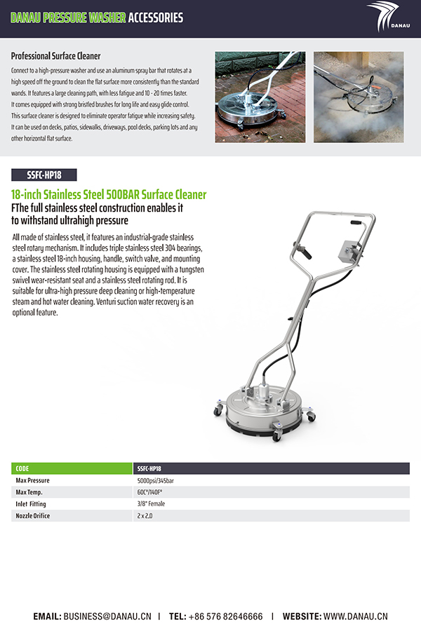 全部由不锈钢制成,配有工业级不锈钢旋转机构。它包括三重不锈钢 304 轴承、不锈钢 18 英寸外壳、手柄、开关阀和安装盖。不锈钢旋转壳体配有钨丝耐磨座和不锈钢旋转杆。文丘里吸水回收是选配功能,适用于超高压深度清洗或高温蒸汽热水清洗。