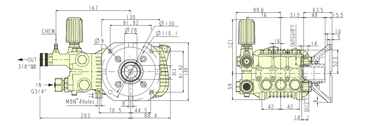 | 卸料口: | 3/4 英寸(BSP 或 NH), 3/8 英寸快速连接 |