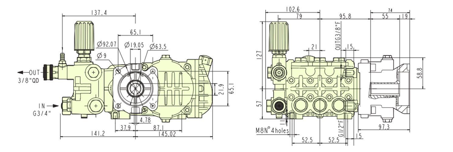 | 卸料口: | 3/4 英寸(BSP 或 NH), 3/8 英寸快速连接 |