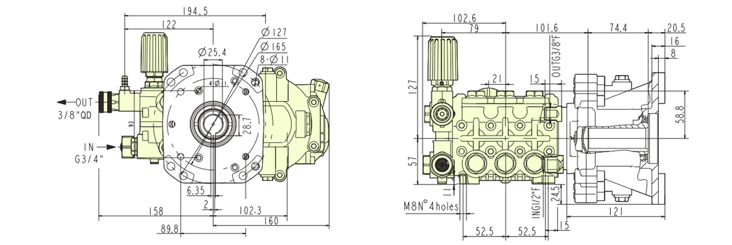 | 卸料口: | 3/4 英寸(BSP 或 NH), 3/8 英寸快速连接 |
