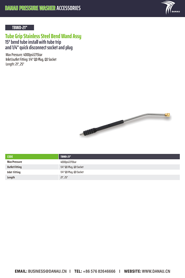 最大压力:4000psi/275bar 入口/出口配件:1/4" QD Pluq、QD Sockei 长度:21英寸,25英寸