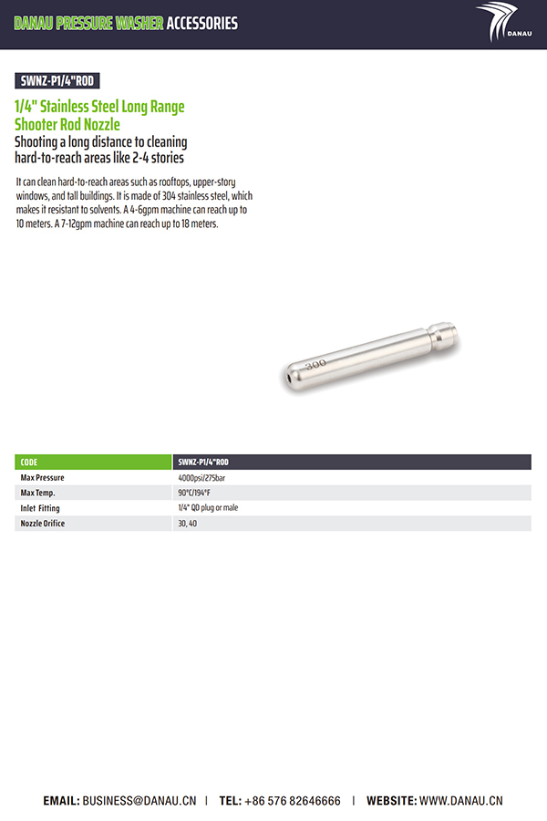 长距离拍摄,清理2-4层等难以到达的区域。它可以清洁屋顶、高层窗户和高层建筑等难以到达的区域。它由 304 不锈钢制成,具有耐溶剂性。4-6gpm的机器可以达到10米。7-12gpm的机器可以达到18米。